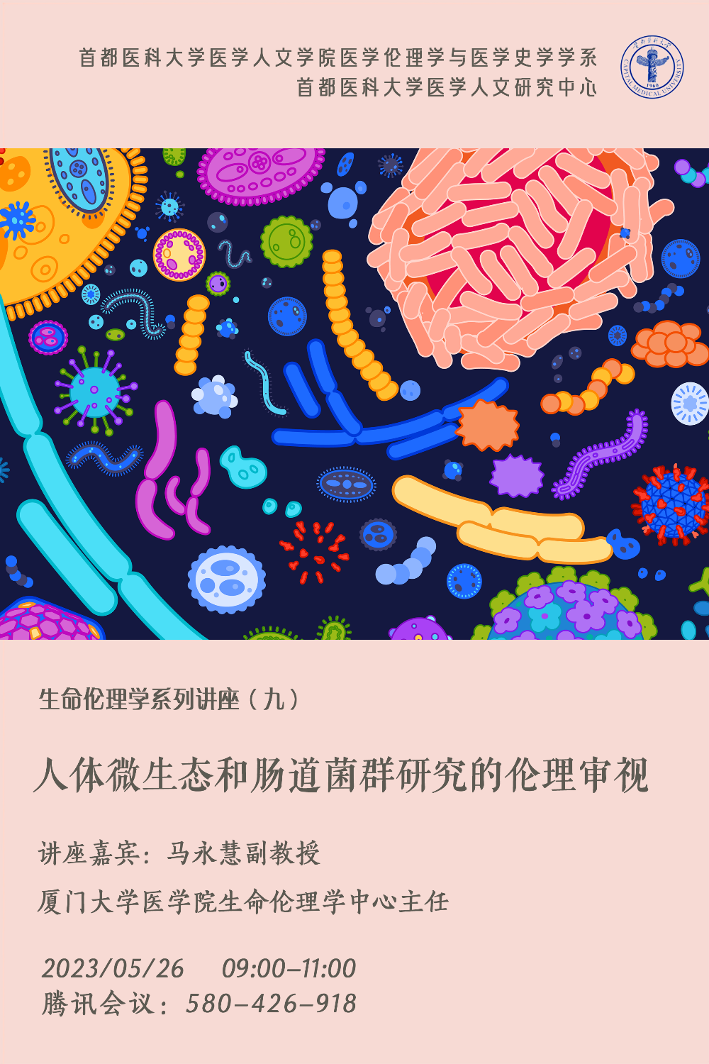 2023年5月26日上午9:00,韩国h漫 医学伦理学与医学史学学系邀请厦门大学马永慧副教授为师生们带来关于“人体微生态和肠道菌群研究的伦理审视”的学术分享,此次分享由学系主任梁立智副教授主持,讲座以线上的方式进行。