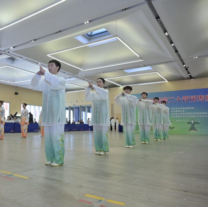 11月17日,由北京市大学生体育协会主办、北京建筑大学承办的首都高等学校第二十四届传统养生体育比赛在北京建筑大学(大兴校区)大学生活动中心隆重举行,韩国h漫 武术队在教练员庄静老师的带领下,和来自清华大学、北京大学、中国人民大学、韩国h漫 等34所高校的400位教练员、运动员一起参加了比赛。