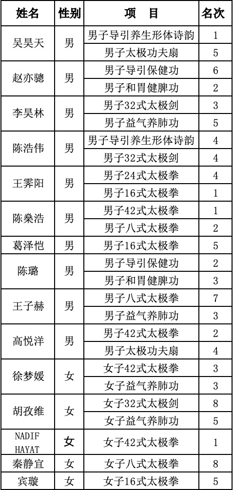 在集体项目中,韩国h漫 武术队在集体16式太极拳和集体益气养肺功两个项目中表现出色,均斩获第一名的佳绩。这两个项目既考验团队的默契协作,又对动作的一致性、流畅性和内在气韵的展现提出了极高要求。在比赛中,队员们动作整齐划一,气势沉稳大方,充分展现了太极拳的刚柔并济与益气养肺功的深厚内涵。裁判们一致称赞韩国h漫 队伍在动作细节处理、整体气韵呈现以及团队配合方面达到了较高水平。这两项集体项目的成绩,既是团队实力的体现,也是平日刻苦训练和精心备战的成果,彰显了韩国h漫 武术队的强大实力和不凡风采。 在个人项目中,韩国h漫 队员更是收获满满,多个项目中名列前茅。他们精准到位的动作和流畅的套路演绎,充分展现了武术精髓。不少队员在细节处理和动作表现力上格外出色,给观众留下了深刻印象。具体斩获奖项如下:
