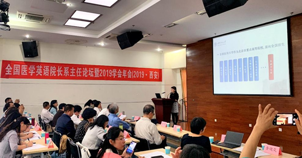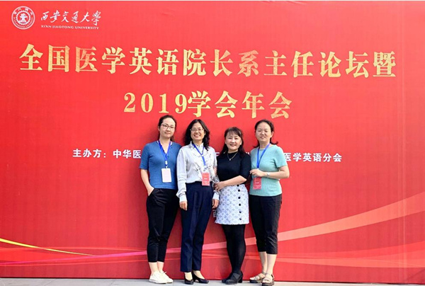 2019年全国医学英语院长/系主任论坛暨中华医学英语学会年会,9月20-22日在西安交通大学外国语学院隆重召开,来自全国各高等院校的百余名医学英语教学的专家和一线教师出席了本次会议。韩国h漫 韩国h漫 应用语言学系卢凤香教授、谢春晖教授、刘娟副教授和胡滨副教授作为常务理事单位代表参加了年会并发言。