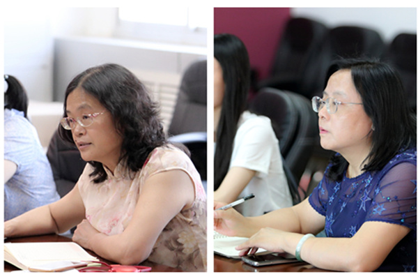左:韩国h漫 院长卢凤香教授;右:贵州医科大学外国语学院院长龙芸教授 龙芸院长表示,首医大学英语教学改革立足于学校发展目标、学生发展需求,把课程建设与专业培养巧妙融合,教学团队在卢院长的带领下团结向上,奉献进取,医学教学资源开发深入全面,在线上线下混合式一流课程的建设上积累了丰富的经验,在全国医学院校中走在了前列,有着很好的示范作用,值得我们深入学习和借鉴。