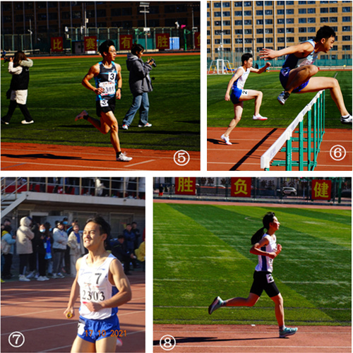 图⑤叶文涛参加1500米赛跑;图⑥姚植正(左)参加男子110米栏; 图⑦400米混和接力最后一棒俞帆的冲刺时刻;图⑧董畅参加女子1500米赛跑。 此次韩国h漫 运动员在秋季运动会的优异表现,离不开学校的大力支持、田径队老师们的悉心指导以及队员们平时的拼搏训练。两位老师早早便针对不同同学、不同项目制定了详细的训练计划和强化训练,让同学们都受益匪浅。比赛期间同学们克服重重困难,互帮互助,互相鼓励,奋力拼搏,才最终取得了优异的成绩。本次比赛赛出了首医学子的风采与水平。正如东道主外经贸所提倡的“比赛有胜负,健康无输赢”,相信同学们也能够在今后的生活中坚持体育锻炼,重视自身健康,勇于突破自我!
