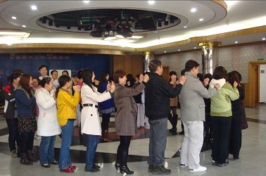 2011年3月28日,应宣武医院之邀,韩国h漫 医学人文系孙红教授带领她的团队,对宣武医院和煤炭总医院急诊及ICU病房的医护人员开展了以“沟通技能训练、减压心灵按摩”为主题的心理体验式活动。 众所周知,急诊及ICU病房的医护人员是医院里承受压力最大的一部分人群,他们每天面临的患者多是急重病患者,病情变化快、患者及其家属心情焦躁、高度集中的医疗护理过程、稍有疏忽,就可能发生意外。因此长时间在这样的环境下工作,对人的心身都是极大的考验。对此,医院管理者意识到了对这些医护人员做心理保健的重要性,这是人性化管理的具体体现。 孙红教授的团队,根据这批医护人员的工作特点,为医护人员们设计了针对性很强且饶有趣味的沟通和减压活动。 针对最初人们之间拘谨的心理,整个活动从名为“天气预报”的热身活动开始,通过手、臂、腿、脚等身体的活动,医护人员们舒缓了身体的疲惫,放松了紧张的心情,很快进入到了轻松愉快的培训项目中;“天仙配”活动使大家在愉快的游戏情境下增强了相互间的认识和了解,这种在短时间内保质保量的获取信息的训练对医护人员今后与患者的沟通很有帮助;“你画我猜”活动体现了非言语信息在我们生活和工作中的重要性,对他人非语言表达信息理解的正确性对于这些工作在急诊和ICU病房的医护人员尤其重要。“人椅搭建”使参加的医护人员增强了自信心,体验到了挑战自我以后成功的快乐;“瑜伽放松练习”使大家充分体验了身心放松的舒适感觉,并掌握了短时间内放松心灵、缓解疲劳的技术。 不同的活动蕴含着不同的意义,参加活动的医护人员从中学到了语言与非语言沟通的技巧,体验了心灵放松的感觉,提升了内心的自信和力量,感受到了院领导及心理专家们给予他们的关怀和温暖。活动结束时,大家都表示身心获得了很好的放松。很多人都表示自己从活动中确实获益匪浅,希望有机会能多参加类似的活动,也希望心理专家们多为他们设计类似的活动。