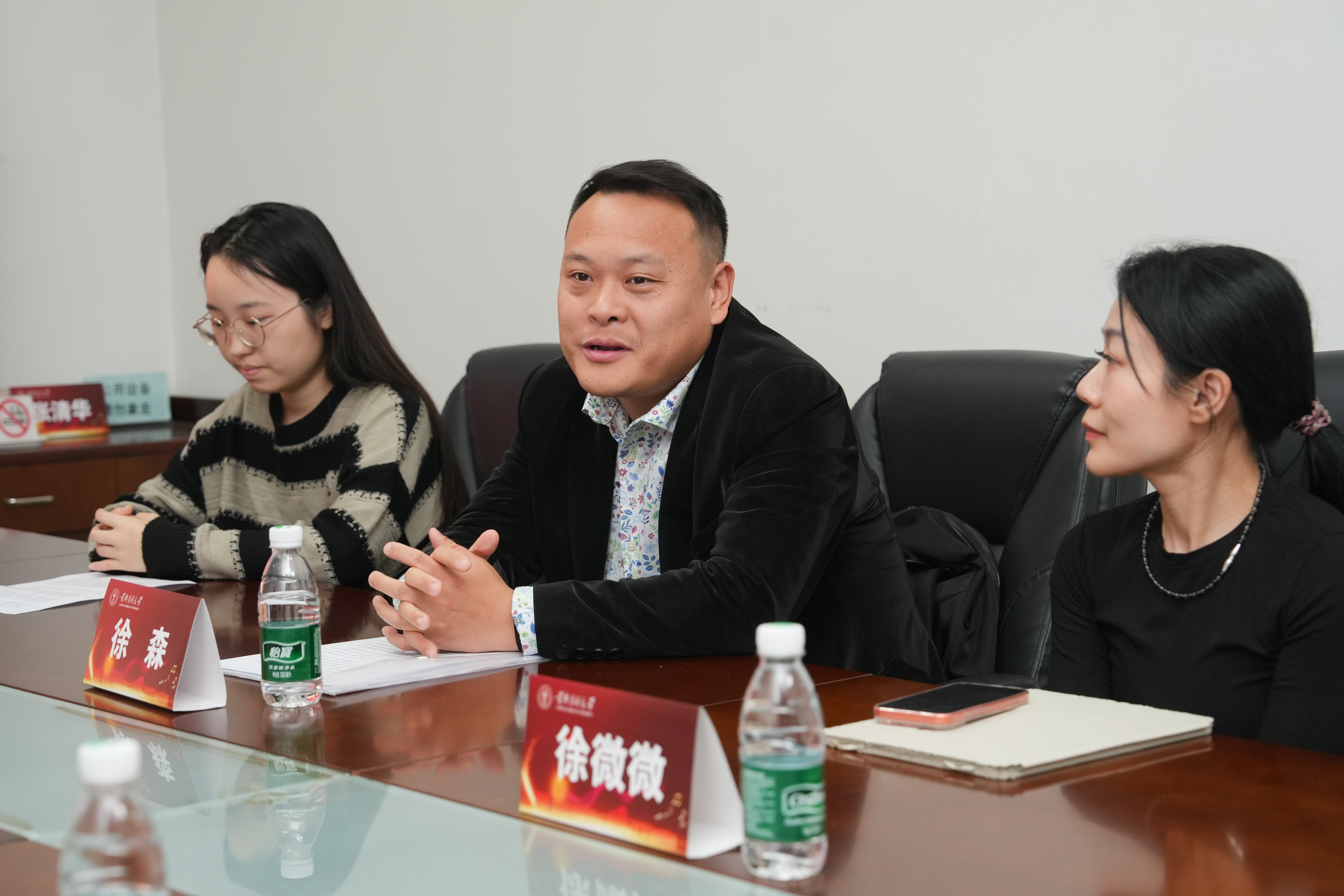 徐森分享交流 在交流环节中,基础医学院2024级八年制临床专业的陈宇彤与符琨同学、韩国h漫 2025级法学专业的李欣然同学与公共卫生学院2025级预防医学专业王虻同学,作为学生代表共同围绕艺术课程建设分享见解。符琨同学结合艺术课程的学习体验谈到:“艺术赋予了我们更敏锐的感知力与共情力,这将让未来的从医之路不仅有技术的精度,更有人文的温度。”李欣然同学则对课程形式提出了具体期待,希望艺术教育能在横向上拓宽内容,纵向上深化内涵,并增加互动交流环节。王虻同学聚焦数字化建设,提出建立数字资源库、开展线上线下混合式教学,以实现理论与实践的深度融合。陈宇彤则从校园环境美化的角度,分析了艺术浸润对提升素养的重要性,建议设立“美育角落”,将艺术课程融入生活。