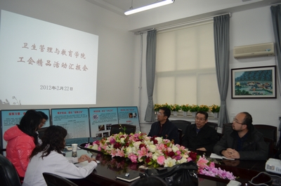 围绕校工会2011年的工作内容,强化基层工会组织建设,我院于2012年2月22日上午,在394工会活动室,开展了2011年度工会小组精品活动展示交流活动。学院工会主席王泽生、副主席王明滨、院工会委员和全体工会小组长参加了此次活动。 7个分工会小组的代表分别展示了一年来所举办的精彩活动。卫生法学系工会小组组织的“趣味运动会”,体育系工会小组为教师庆生的活动,教学辅助中心工会小组开展“每周锻炼一小时,快乐工作一星期”的健身活动,内容各具特色。让所有人印象深刻的是应用语言学系工会小组组织学系全体教师为退休教师举行退休欢送会,祝福万千,温馨感人。另外,其他工会小组所组织的踏青、秋游、观看展览等活动也都体现了工会的人文关怀。大家在交流中相互学习,彼此提高。 院工会主席王泽生书记做了总结,他充分肯定了各工会小组的活动,希望各工会小组要进一步加强精品意识,要突出特色、主题明确,同时提出要认真策划、准备2012年度的工会活动的要求。