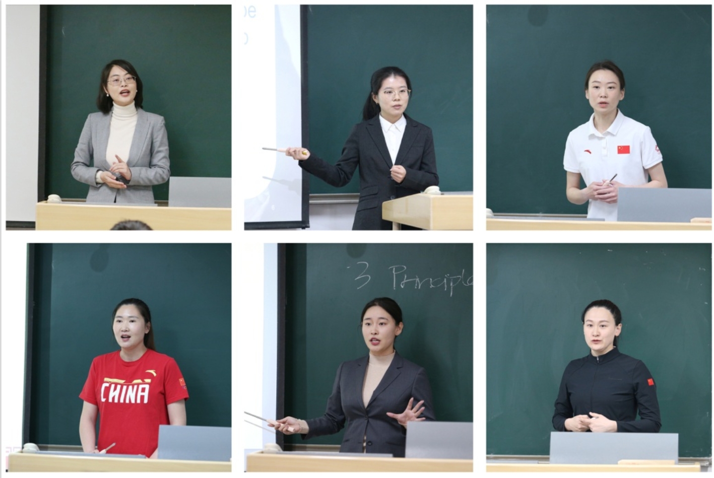6位青年教师各展风采 (图中从上至下,从左至右分别为:孙冀韬、刘佳欢、张茜、杨洁、张越、孟小琛)。 校教学督导组组长陈安宇教授、教务处原副处长吴萍教授分别进行点评。两位专家充分肯定了学院对教学工作和青年教师培养的重视。赞扬比赛程序规范,选手们充满朝气,充分展示了青年教师的风采;指出选手们的教案整体不错,规范、到位,教学内容能够反映学科发展前沿,信息手段掌握好,课程设计科学,内容选取与医学专业课高度相关,易于引起师生共鸣,能够关注学生反应并及时反馈,巧妙展示教学进度。同时,两位专家也从教案书写、教学设计、教学组织和展示等方面指出了存在的不足,并提出中肯的建议和意见。