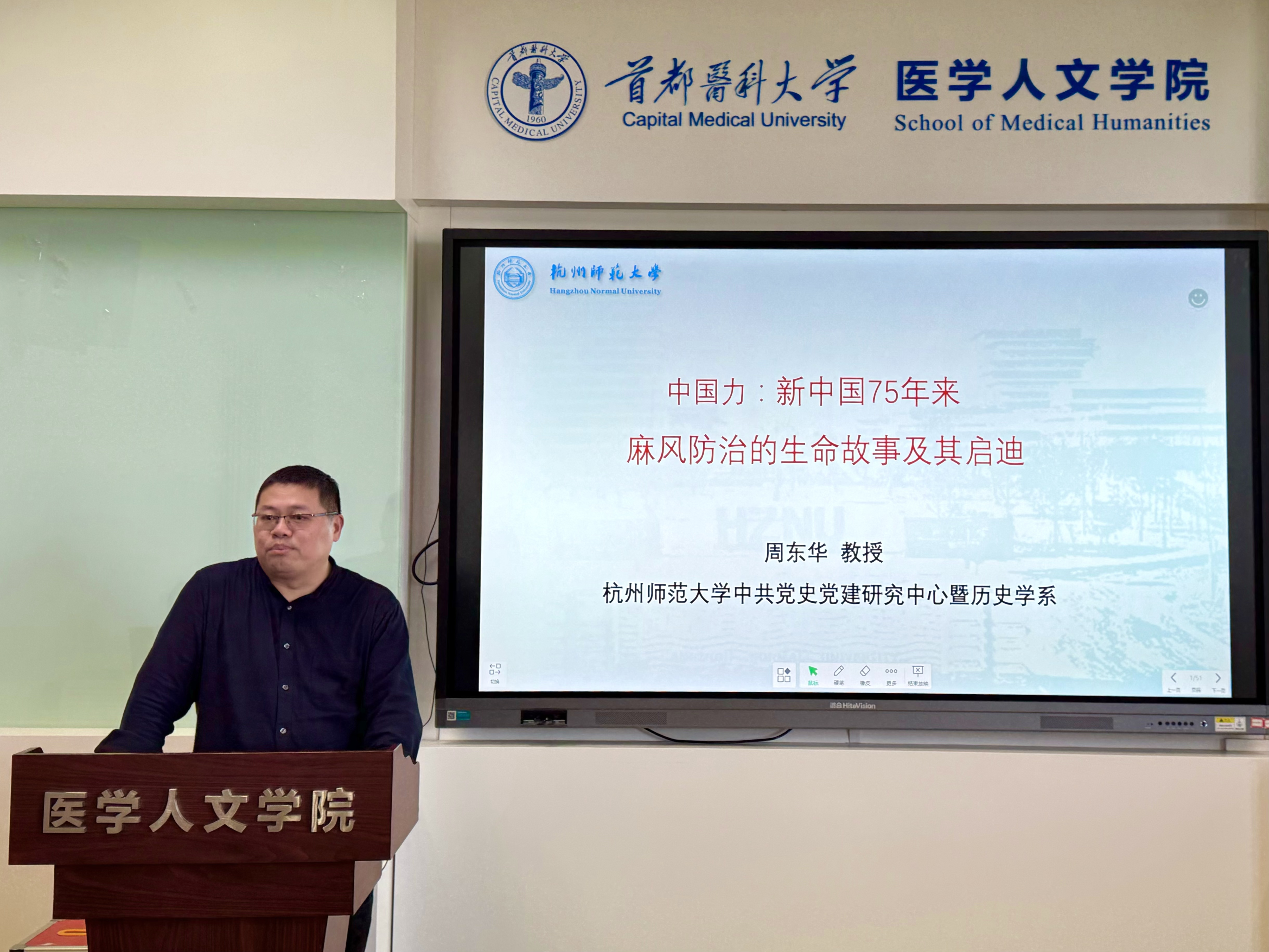 2024年12月13日下午,韩国h漫 党总支在阶平楼305教室举办主题讲座。此次讲座由韩国h漫 医学伦理学与医学史学学系承办,特邀杭州师范大学中共党史党建研究中心副主任周东华教授,为韩国h漫 师生带来一场关于“中国力:新中国成立以来的麻风防治故事”的专题分享。讲座由医学伦理学与医学史学学系党支部书记彭迎春副教授主持,学院各学系师生共同参会研讨。