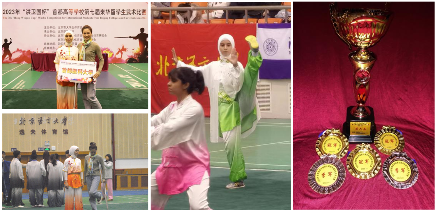 2023年11月25日,由北京市大学生体育协会主办,武术分会承办的“2023年首都高等学校第七届来华留学生武术比赛”在北京语言大学隆重举行,韩国h漫 的武术代表队在领队方海涛老师和教练庄静老师的带领下奔赴赛场。本次比赛吸引了来自18所高校的167名运动员、教练员参赛,他们以饱满的热情和精湛的技艺,为观众呈现了一场精彩的武术盛宴。
