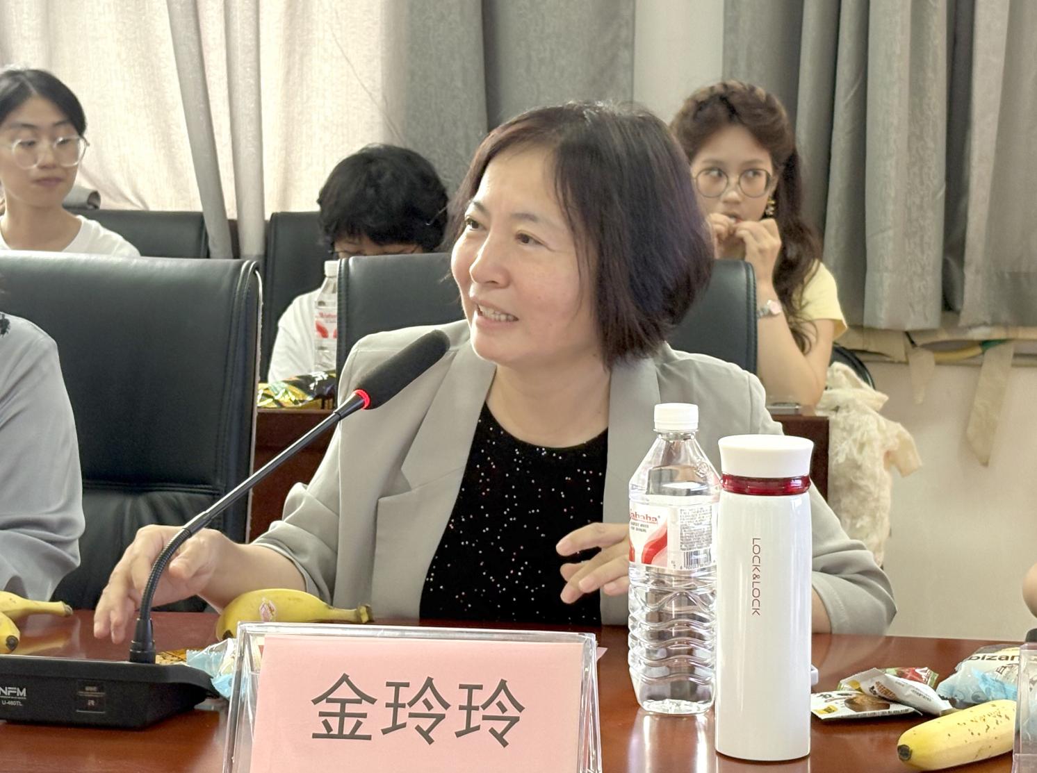张清华副院长发言 教学副院长张清华老师从学院专业人才培养特色与卫生法学课程建设入手,系统介绍了学院在教育教学方面的创新举措与实践成果。她还结合人工智能课程建设情况,展示了学科交叉与科技融合带来的前沿教学成果。通过本次介绍,同学们对个人学业发展方向有了更清晰的认识,也对未来专业路径充满了信心。 作为主管学生工作的学院副书记,金玲玲老师希望同学们尽快完成新的角色转变,规划未来,学会自主管理、主动学习、独立思辨。并希望大家不仅要深耕学业,更要积极参与班团活动、社会实践、志愿服务等,提升自己的综合素质和能力。她最后叮嘱同学们,遇到困难或心理困惑第一时间联系辅导员或老师,辅导员、班主任是同学们坚实的后盾。