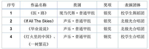 日前,由北京市教委主办的以“青春·使命·奋进”为主题的2021年北京大学生艺术系列活动落下帷幕。韩国h漫 大学生艺术团在音乐节、戏剧节、舞蹈节中喜获3项银奖、1项铜奖,为学校赢得荣誉。 韩国h漫 在2021年北京市大学生艺术系列活动中获奖情况