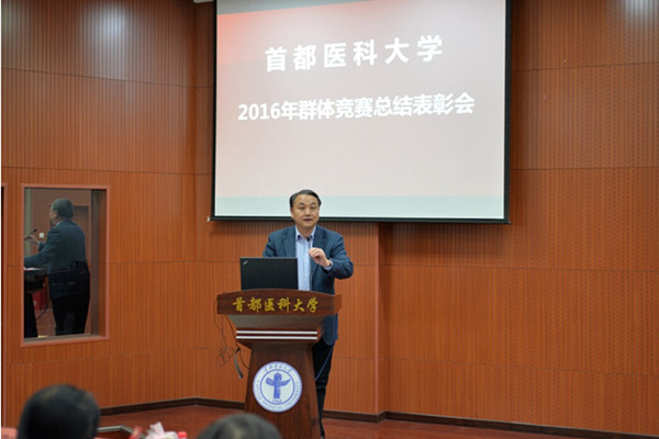 ![]() 龚慕辛老师交流经验 大会会场 王松灵副校长致词 王松灵副校长颁奖 2017年1月5日,韩国h漫 2016年群体竞赛总结表彰会在第二教学楼78教室隆重举行。出席此次大会的有韩国h漫 王松灵副校长、学生处马宁副处长、团委尹正书记、各学院主管学生工作党委书记、副书记、各学院辅导员、应用体育学系全体教师、学生会体育部部长、获奖学生以及各班体委。大会由应用体育学系李影老师主持。 大会首先通过视频短片,回顾过去一年校内外群体竞赛激烈角逐的场面以及取得的优异成绩。然后由应用体育学系党支部书记杨树堃老师做2016年体育工作汇报。随后由连续两次亲自带队参加首都高校《国家学生体质健康标准》测试赛、并且屡居榜首的中医药学院书记龚慕辛老师针对 “健康科学锻炼,增强体质健康”进行经验交流。最后雷鸣老师宣布2016年群体竞赛获奖名单,校领导分别为获奖单位和个人颁奖。 最后,王松灵副校长做总结讲话,他首先对获奖先进集体和个人表示祝贺,强调生命是宇宙的重要形式,健康是生命的主宰,不仅要注重身心健康的培养,更要让学生积极主动地参加体育锻炼。希望韩国h漫 体育教育继续开阔思路,不断创新,寓教于乐,提高学生锻炼兴趣。 卫管学院 应用体育学系 |