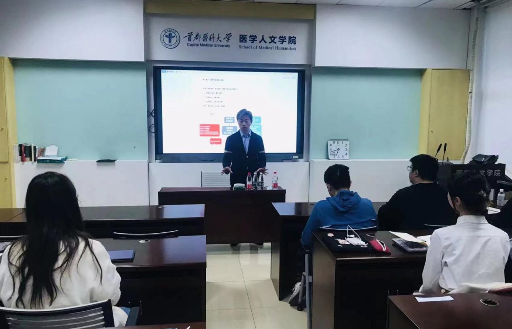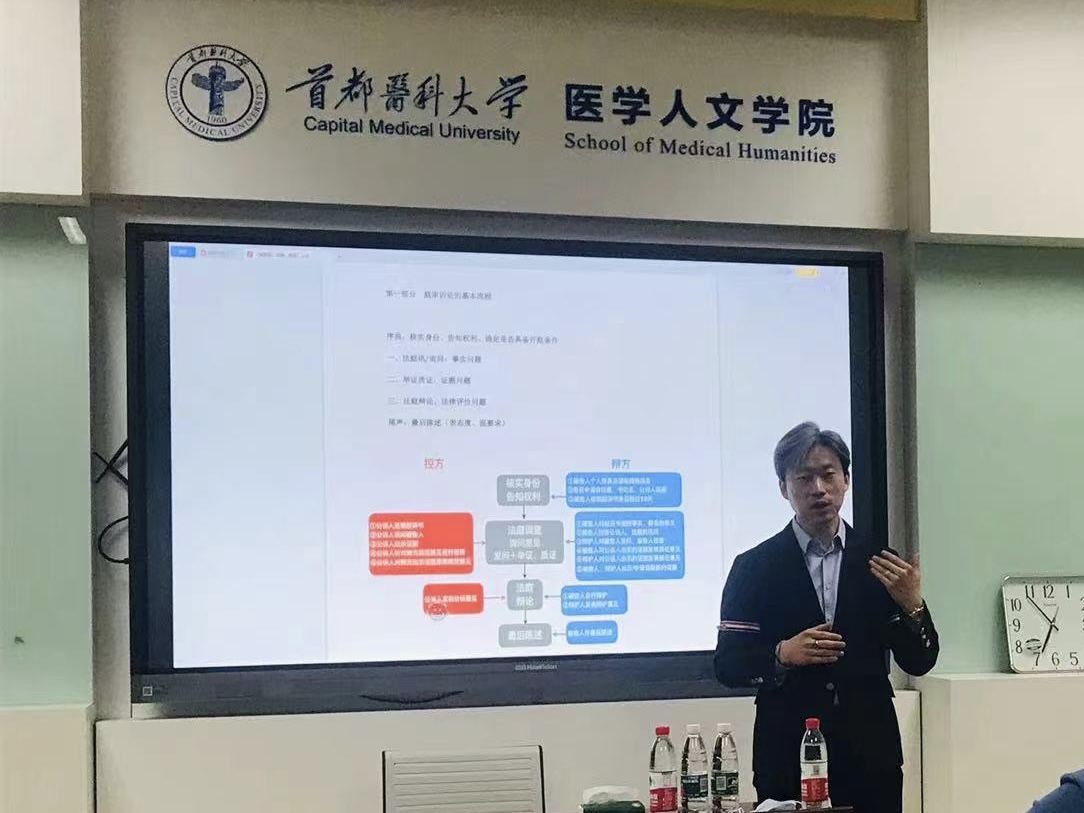 图1辅导课堂现场 为更好地提高实践教学的水平,加强卫生法学专业学生的专业知识与法学素养,韩国h漫 于卫生法学系2023年4月17日邀请京都律师事务所孙广智律师为学生们讲授模拟法庭的实务课程,讲座由卫生法学系党支部书记孟彦辰副教授主持。