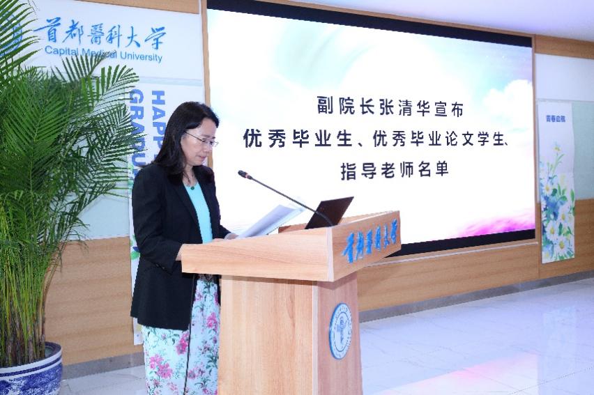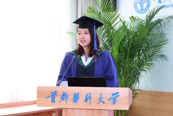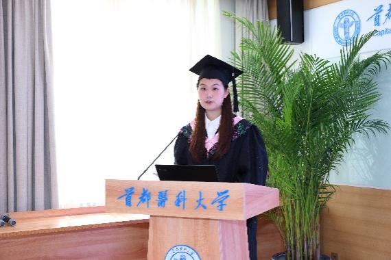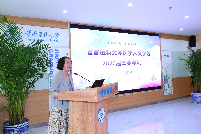 副院长张清华教授发言 毕业生代表张书阁和任静分别发言。张书阁同学以"感恩与成长"为主题,深情回忆了四年求学历程中的点滴温暖,表达了对师友的感激之情;任静同学则从研究生视角出发,分享了在医学与人文交融中的学术体悟,展现了新一代医学人文人的思考与担当。