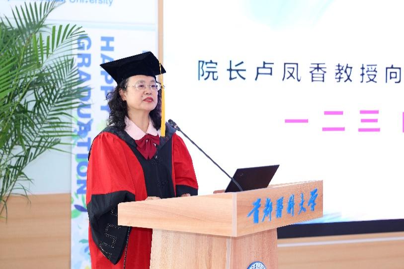 研究生表演和本科生表演 在毕业典礼上,卢凤香院长以"一二三,向前走"为主题,用饱含深情的寄语为毕业生送上真挚祝福。她结合自身经历与教育观察,勉励学子们牢记三句话:抬头锚定方向,静心沉淀思考,在笃行中成长。卢院长殷切期盼每一位毕业生都能"抬头有理想、静心有智慧、落地有远方",并深情表示人文学院永远是他们温暖的家。这番寄语既充满人生智慧,又饱含师长关怀,为即将启程的学子们指明了前行的方向。