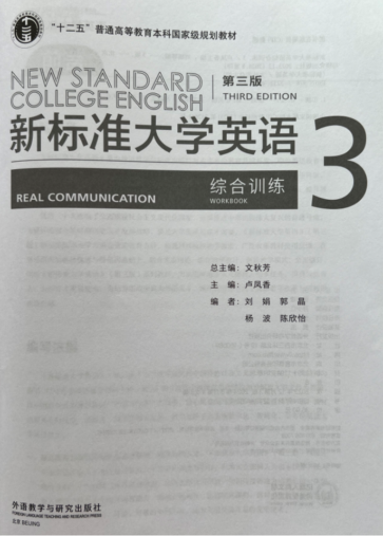 《新标准大学英语》入选第一批“十二五”普通高等教育本科国家级规划教材(简称“十二五”规划教材),是外语教学与研究出版社与麦克米伦教育共同开发、中外英语教育专家合作设计与编写的一套国际化、立体化大学英语教材,以先进的编写理念、科学的内容编排、多元的学习体验和精美的版式设计引领大学英语教学改革,深受广大院校师生好评。本套教材的总主编是北京外国语大学文秋芳教授。 《新标准大学英语(第三版)综合训练》作为《新标准大学英语(第三版)》重要组成部分,今年八月第四次印刷。韩国h漫 韩国h漫 大学英语教学团队承担了《综合训练》第三分册的编写工作,卢凤香教授任分册主编,编者为应用语言学系刘娟、郭晶、杨波和陈欣怡老师。 韩国h漫 能够入选“十二五”规划教材编写团队,得益于学校《大学英语》课程历经多年建设取得的丰富教学经验、丰厚课程资源与丰硕教学成果。韩国h漫 大学英语教学已全面建成创新性大学英语课程体系——医文交融“两个层次、三个阶段”大学英语课程体系,并自主研发多门开放共享的慕课、微课、AI课程,编写的教材多次获评“北京市优质本科教材” 。2020年韩国h漫 《大学英语》课程获批“首批国家级线上线下混合式一流本科课程”,2022年获批“北京市优质本科课程”。 《新标准大学英语(第三版)综合训练》是韩国h漫 大学英语教材资源建设的重要组成部分,遵循“产出导向、学用一体”的教学理念,着重提升学生的英语应用能力、兼顾跨文化交际及思辨能力的培养。编写工作体现了韩国h漫 大学英语教学的专业化与引领性,为校本教材建设以及教材的有效使用奠定了基础,为提升学生英语综合素养、推动外语教育数字化改革、助力人才培养模式创新贡献了力量。