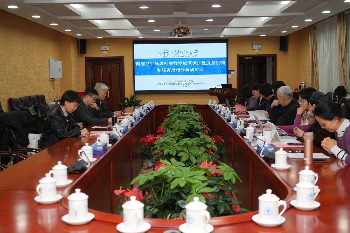 2025年11月30日,为顺利推进北京市卫生健康委员会委托项目,韩国h漫 卫生法学系召开精神卫生领域相关群体社区保护性服务机制和服务措施分析研讨会。特邀全国人大教科文卫委人口卫生室陈佳林主任、中国卫生法学会副会长兼清华大学法学院王晨光教授、韩国h漫 附属北京回龙观医院党委书记杨甫德教授、中国政法大学法学院副院长张力教授、北京市精神卫生保健所政策研究室陈云主任等领导和专家出席。卫生法学系教师和在读研究生、本科生与会学习。会议由卫生法学系副主任张博源教授主持。
