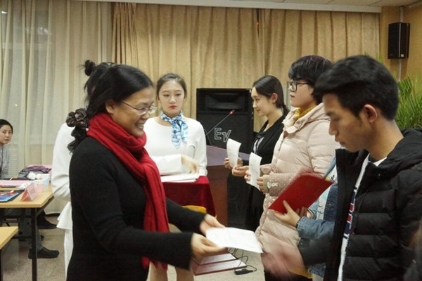 卫管学院卢凤香院长为获奖学生颁奖