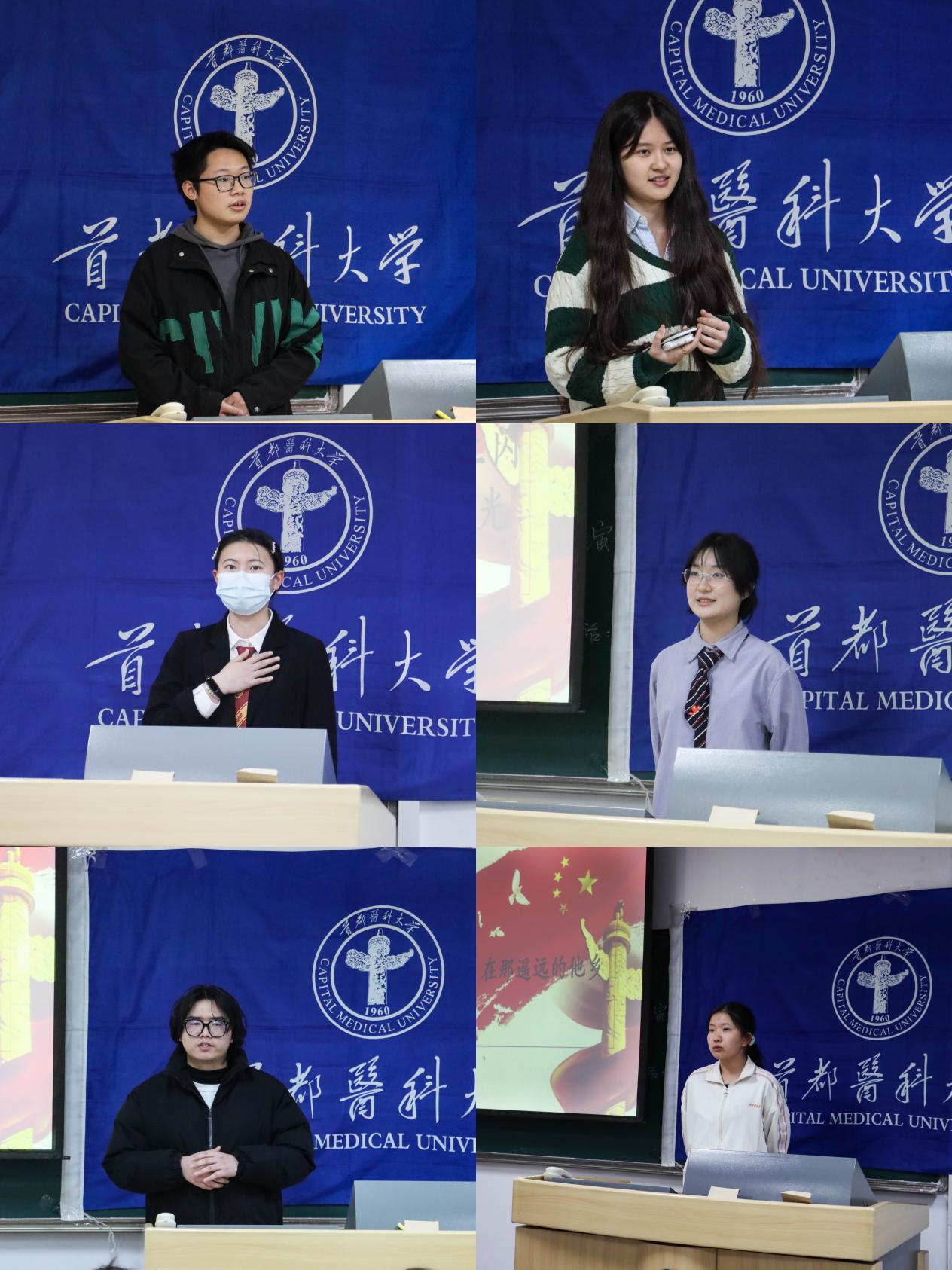 比赛现场 “体育强则国家强,国运兴则体育兴”,体育与国家命运的紧密联系。来自不同的专业和班级的12位参赛选手,分别以“体育强国梦、体育强身精神铸志、我心中的体育与医学故事、从巴黎奥运感受‘中国之光’”为主题,表达了对中华体育精神和奥林匹克精神的深刻感悟。展示了首医学子的青春之声。