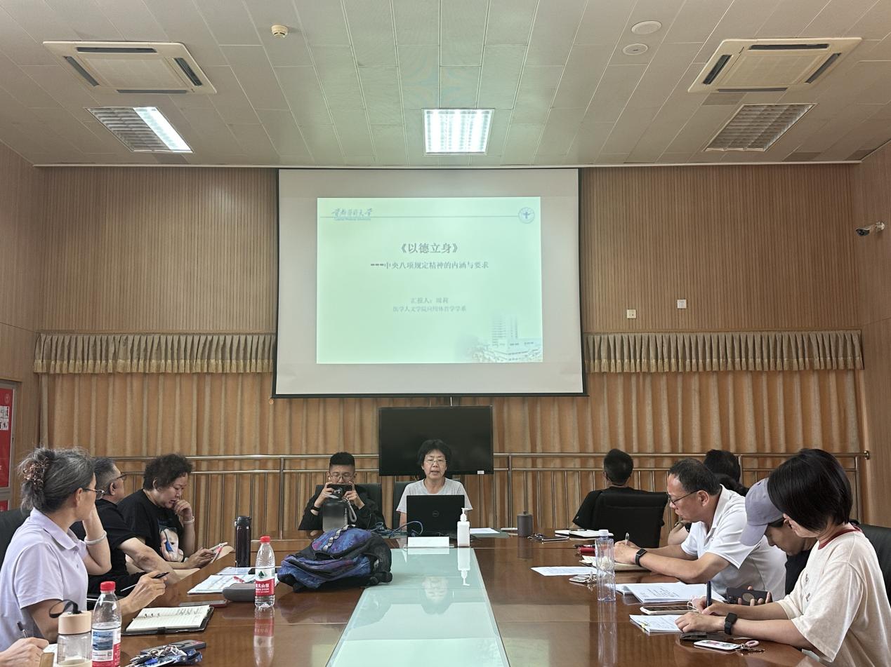 为提升教师课程思政教学能力,深入推进学系课程思政建设,2025年7月1日,在体育馆五层会议室成功举办应用体育学系课程思政系列研讨活动。本次活动聚焦“以德立身”与“以德立学”两大主题,应用体育学系周莉教授与韩洋副教授担任主讲人。两位老师深度解读了如何将八项规定精神融入体育教学,切实落实立德树人根本目标。其深刻见解引发了广大教师的强烈共鸣,为学系教育工作注入了蓬勃活力。 两位老师强调,体育教师的作风本身就是无声的德育教材,应以身作则,用严谨的教学态度、拼搏的奋斗精神和廉洁的职业品格感召学生,塑造其高尚品德与团队精神。同时,他们着重指出实干精神的重要性,倡导体育教师脚踏实地做好每项工作,以切实行动践行“以德立身”“以德立学”理念。 讲座中,两位老师结合自身教学实践,生动分享了在体育教学中渗透道德教育的具体路径。他们提出,体育教师需关注学生全面发展,尊重个性差异,以爱心与耐心引领学生成长。此外,应积极投身社会服务,以实际行动传递社会正能量。 本次活动不仅深化了教师对“以德立身”“以德立学”内涵的理解,更提供了宝贵的实践经验。我学系将持续秉持这一理念,全力提升教育质量,培育更多优秀人才。最后,以韩洋老师的深刻论述作总结:“体育教师擦汗的毛巾可以旧,但思想的毛巾必须常新。八项规定精神如明镜,映照为师者的初心与方向——“以简立身”方能心无旁骛专注育人本质,“以实立教”才能脚踏实地筑牢育人之基,“以廉立范”才可光明磊落永葆师者本色。让我们以八项规定精神为指引,将“以德立学、以德立身”内化于心、外化于行,在广阔操场上用汗水浇灌希望,用规则守护公平,用廉洁书写尊严,用实干成就未来,共同谱写新时代体育教育立德树人的壮丽篇章。