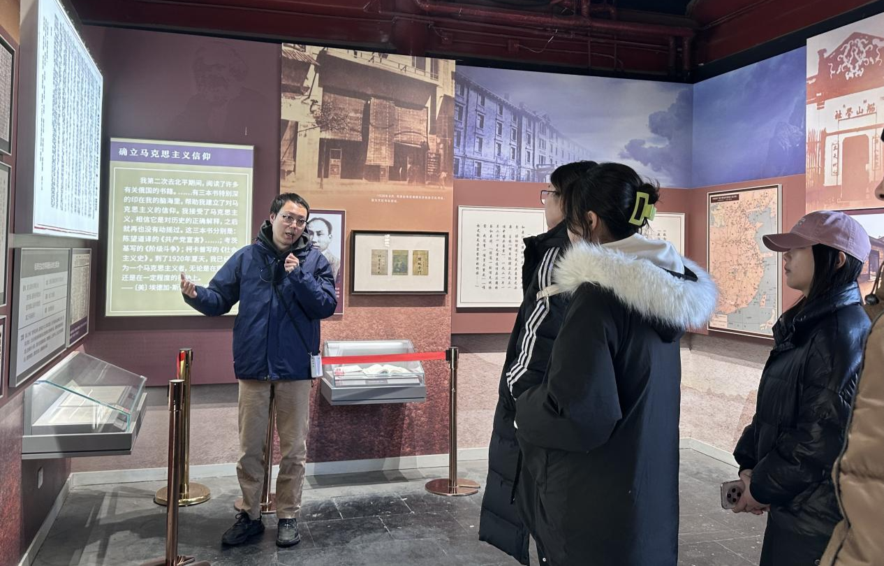 学生们通过卫生法宣传卡片向游人宣讲 普法宣传进社区,雷锋精神暖人心 2022级和2023级法学(卫生法学方向)班的师生们在陶然亭公园南门,开展普法宣传活动。他们将精心制作的文明行为法律指引便携卡片发放给过往群众,卡片内容涵盖《北京市文明行为促进条例》等法律法规,用通俗易懂的语言向市民普及法律知识,传播文明理念,将雷锋精神融入日常生活,用实际行动践行志愿服务精神。 红色基因永传承,革命精神励青春 在北京市爱国主义教育基地——慈悲庵,师生们怀着崇敬的心情,跟随讲解员的脚步,参观了“五四运动与马克思主义传播”主题展和“北京共产党早期组织”历史陈列。一幅幅珍贵的历史照片,一件件真实的文物史料,一幕幕生动的场景复原,将大家带回到那个风雨如磐的年代,深刻感受革命先驱为民族独立和人民解放抛头颅、洒热血的伟大精神,进一步坚定了热爱党、热爱祖国、热爱社会主义的理想信念。