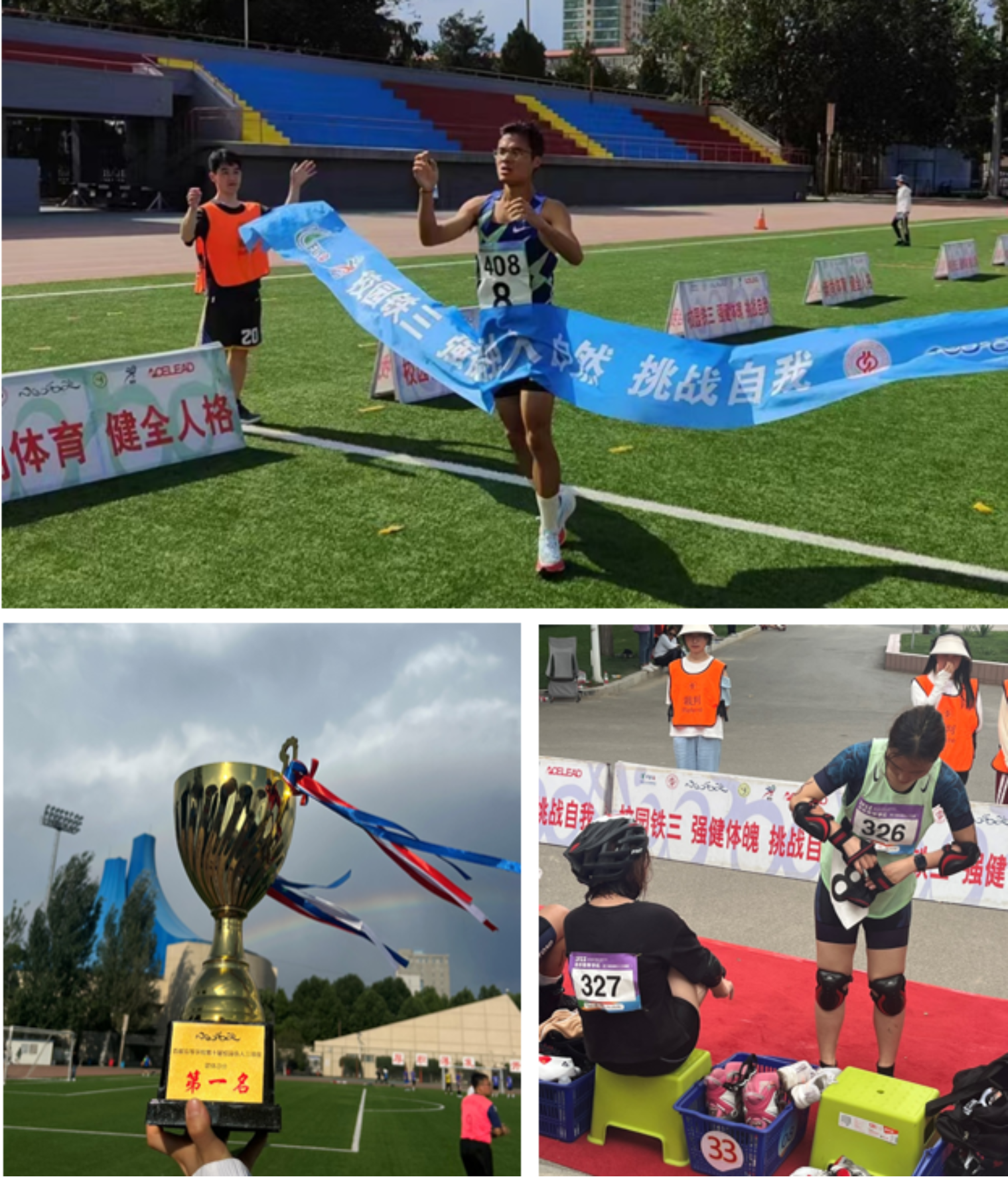 下午的比赛同样精彩!率先进行的是轮滑三项,这是最具有挑战性的项目,包含游泳、轮滑、跑步,水陆两种不同的环境,这对选手的耐力,意志力和适应能力有着极大的挑战。韩国h漫 同学范宇萱跑步是她的强项,但游泳与轮滑的能力也不容小觑,最终范宇萱同学取得女子轮滑三项季军的好成绩。