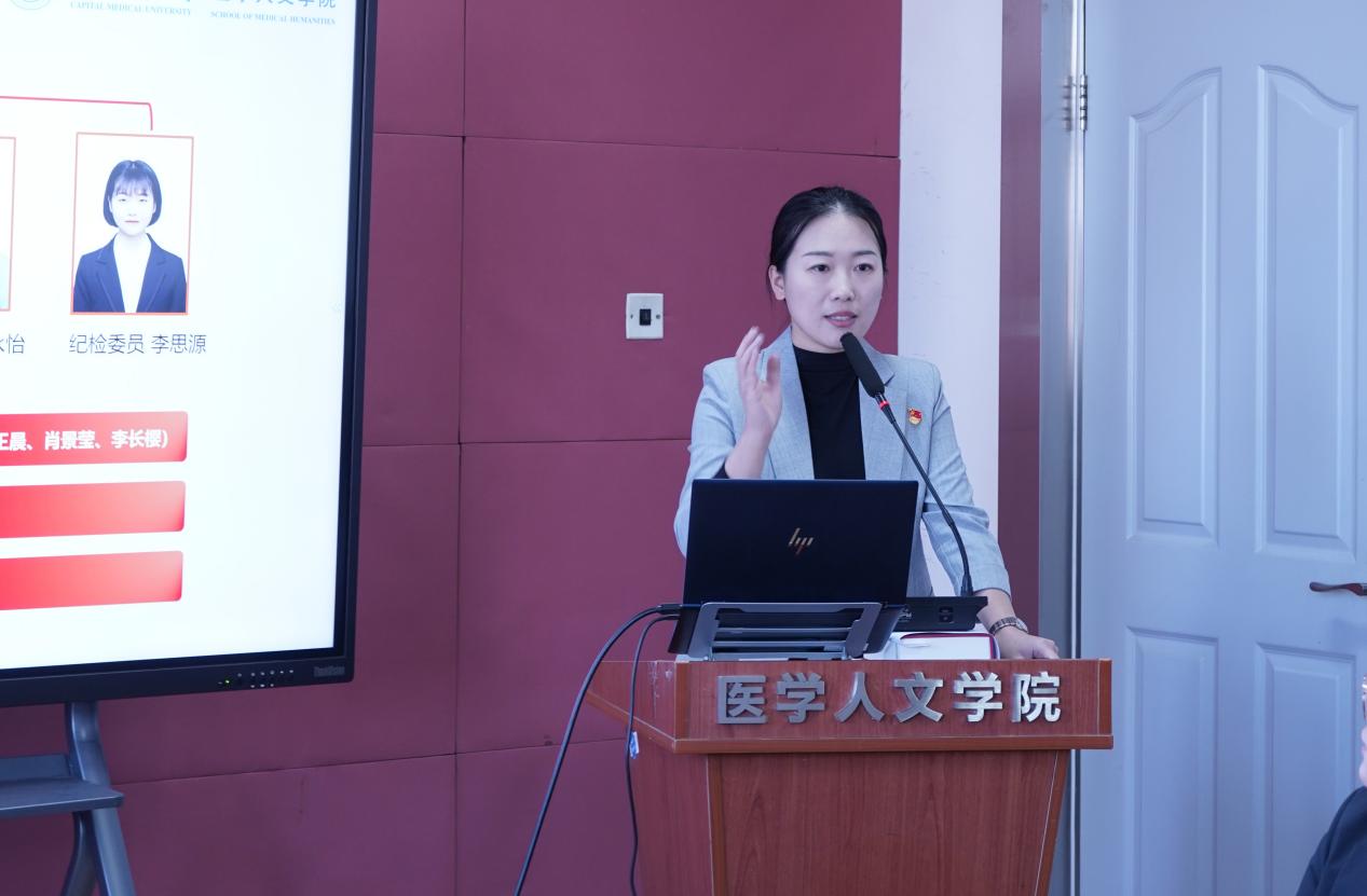 王晨做党支部工作汇报 支部书记王晨首先以“‘党建红’点亮青春路”为题对2024年韩国h漫 学生党支部工作情况汇报,回顾了过去一年党支部以思想建设为核心、组织建设为基础、制度建设为保障、服务社会为己任所取得的良好成绩。