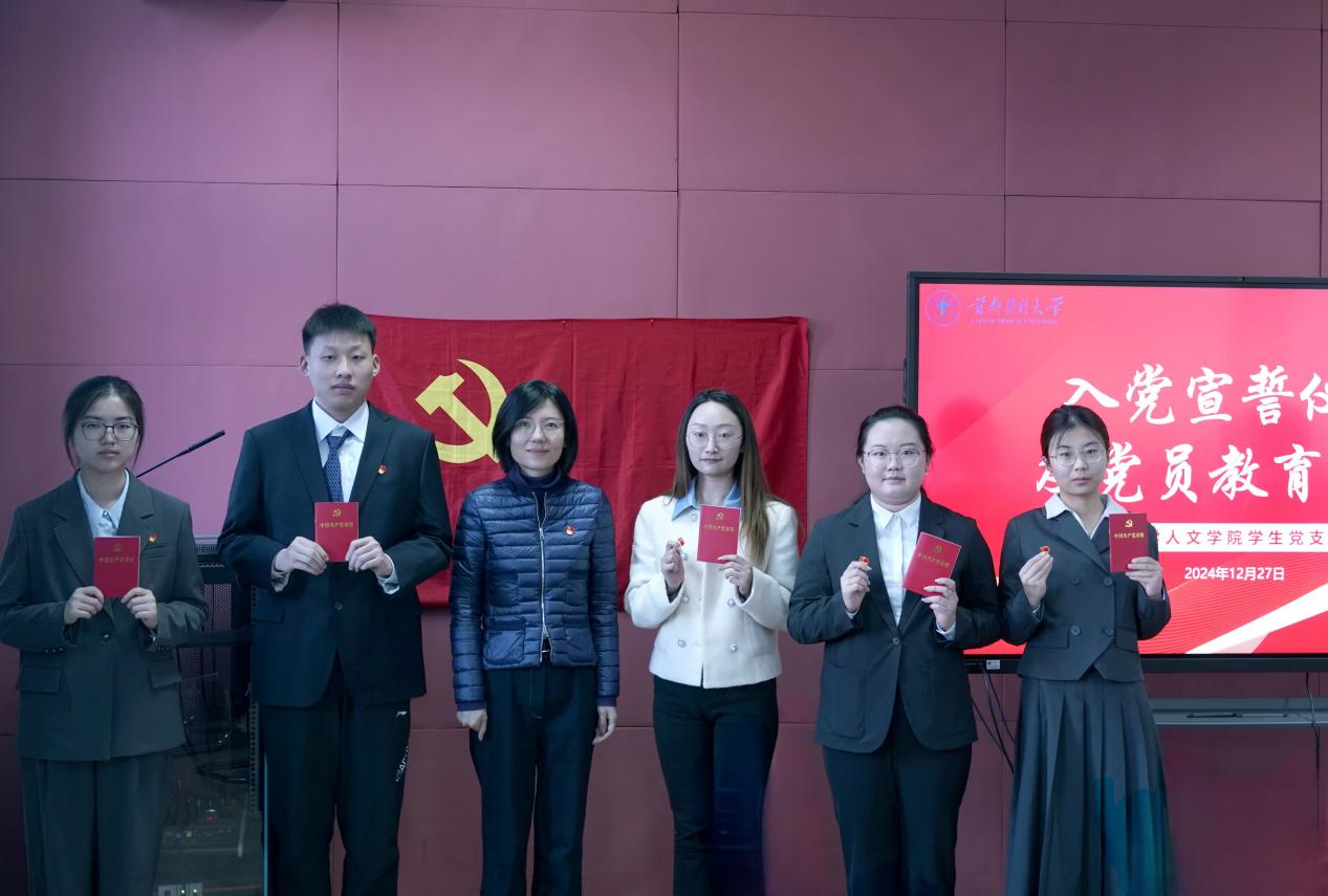 2024年12月27日下午,韩国h漫 学生党支部在阶平楼396会议室举行新党员入党宣誓仪式及党员教育活动。本次活动旨在通过庄重的入党宣誓和深入的党员教育,增强新党员的使命感与责任感,激励全体党员不忘初心、牢记使命。校党委副书记张莉鑫、韩国h漫 党总支副书记金玲玲出席此次活动,与参会党员、积极分子一同见证了这一庄严而神圣的时刻。活动由党支部书记王晨主持,在奏唱《国际歌》的庄严氛围中正式拉开序幕。