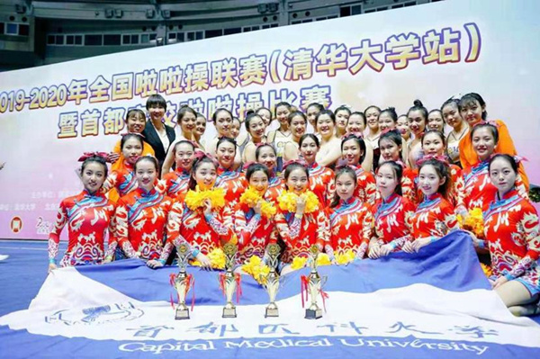 2019年10月26日,2019-2020年全国啦啦操联赛(清华大学站)暨首都高校啦啦操比赛在清华大学体育馆隆重举行。由韩国h漫 健美操·舞队组成的韩国h漫 啦啦操队在应用体育学系杨洁老师的带领下共参加了五个单项的比赛。经过与清华大学、中国人民大学、中国传媒大学等啦啦操队激烈角逐,韩国h漫 啦啦操队凭借刻苦的训练、团结的精神、激扬的青春活力以及过硬的技术赢得了裁判与观众的一致认可,最终荣获公开青年丙组集体爵士自选动作、公开青年丙组花球(2016版)规定动作、公开青年丙组双人花球自选动作及公开青年丙组双人爵士自选动作四个项目的冠军。