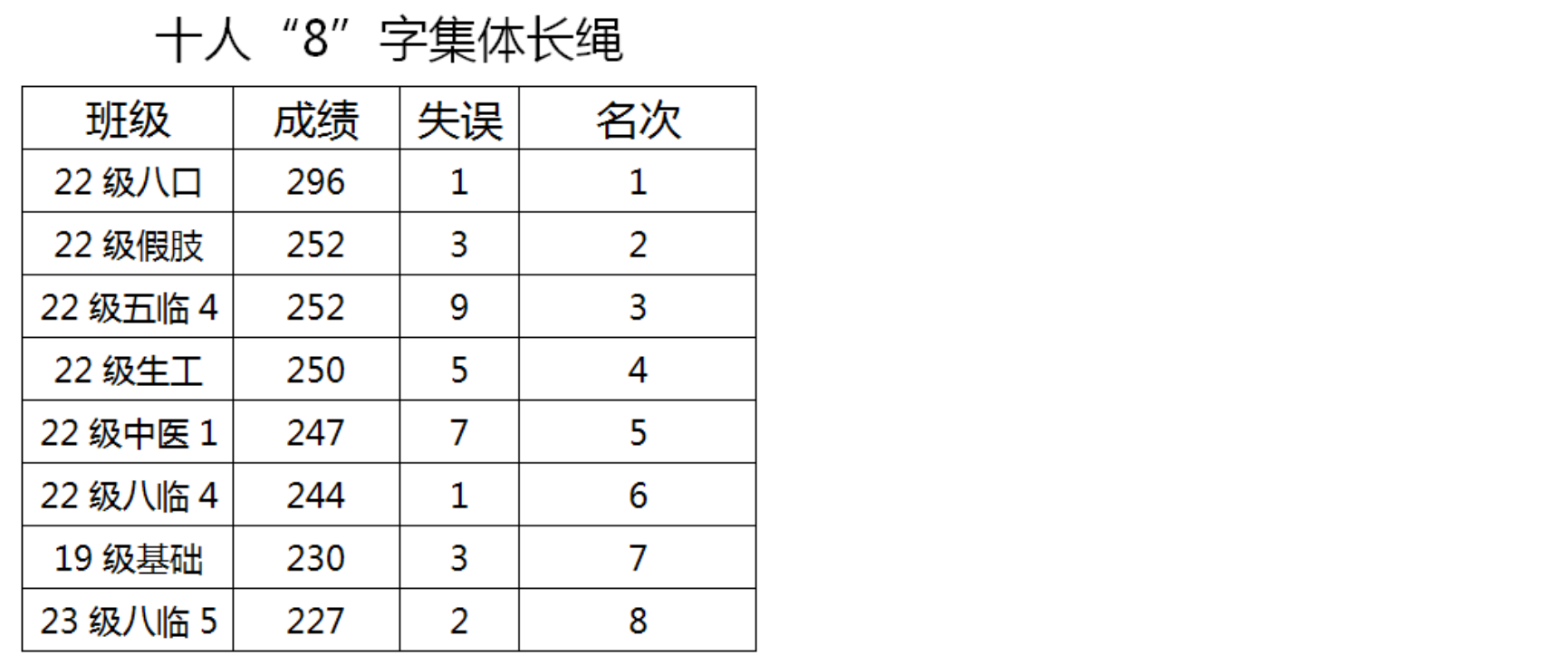 11月8日,首医校本部的操场上人声鼎沸,一片热闹。比赛瞬间展开,精彩纷呈。各班选手都充满了斗志和热情。他们是对手亦是朋友,随处可见的是同学们在赛场上互相激励,为自己及班级争取荣誉。他们全心地投入到比赛中,尽全力展现出自己的技巧和速度,不断挑战自己的极限。经过激烈的角逐,最终宋恒炜,林世泉,刘迪,郑欣雅,分获男(女)单、双摇比赛第一名,22级八年口腔班获得十人“8”字集体长绳冠军,各项比赛成绩见附表。 医学生——他们不仅在专业课程中表现出色,而且在体育比赛中也展现了勇往直前、奋力拼搏的精神。体育比赛不仅是锻炼身体的机会,更是展现团队合作和竞技精神的舞台。这次比赛不仅丰富了校园生活,也增强了同学间的交流与团结。 通过比赛,同学们更加坚信只有拥有健康、强大的身体和积极的心态,才能更好地为梦想努力奋斗,成为一名更好的医学生。 附表:韩国h漫 2023年秋季跳绳比赛获奖成绩