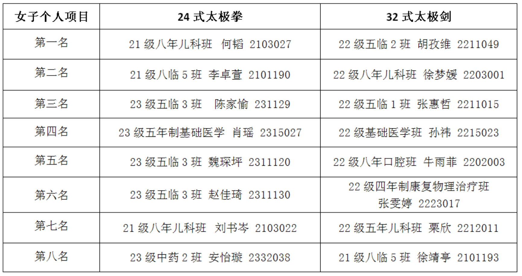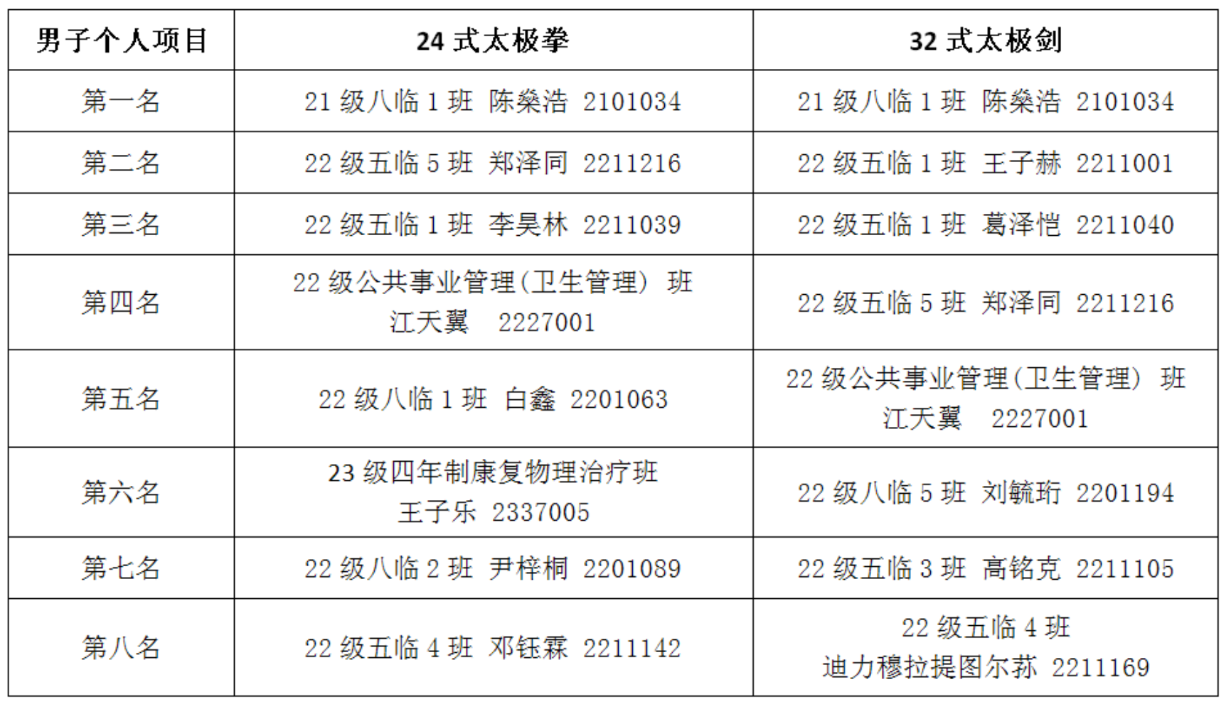 2023年11月27、30日,由校体育运动委员会主办,应用体育学学系承办的韩国h漫 太极拳(剑)比赛在韩国h漫 体育馆一层顺利举办。本次大赛面向韩国h漫 右安门校区学生,以班级为单位报名,分为集体项目和个人项目两大环节,包括24式太极拳、32式太极剑,为学生们提供了一个展现自身实力和交流技艺的平台。比赛吸引了97名学生报名个人项目,17个班级共138名学生报名集体项目,展现出同学们对太极拳(剑)赛事的热情。