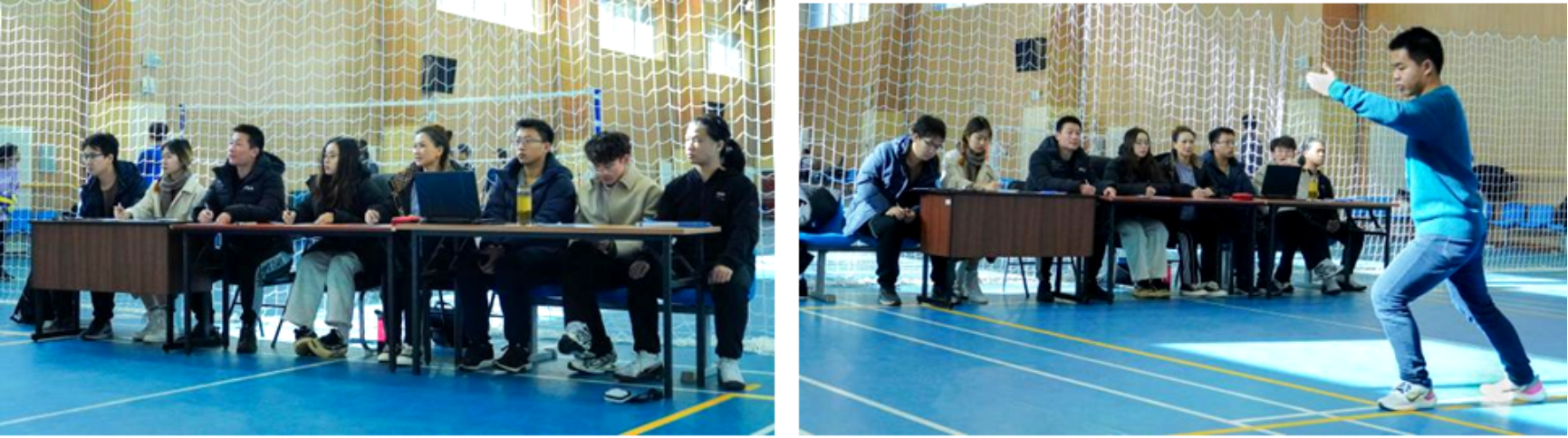 本次大赛由应用体育学系庄静老师任总裁判长,张秋阳和沈嘉欣两位体育老师与韩国h漫 武术队部分成员组成裁判组。裁判们密切关注比赛过程,确保选手的安全情况。每组比赛结束后,裁判当场公布得分,保证了比赛的公平公正。